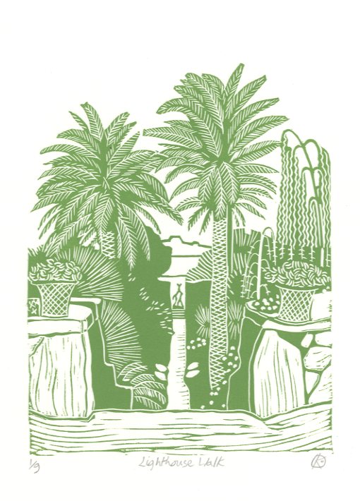 Inspired by a visti to the magnificent Tresco Abbey Gardens, on the island of Tresco in the Scillys. The towering Canary Island date palm trees frame the view of the Tresco Children sculpture by David Wynne in the distance