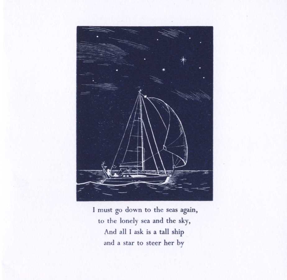 So, as a special gift for my loved one this Christmas, I set about engraving a small block of lemon wood with the design of a yacht in full sail with a cruising shute. My idea was to add the first stanza of this poem which is so evocative to anyone who has a love of sailing and being on a sailing boat on the open sea. The last engraving I had completed was almost a year ago; one which I had really struggled with because of the brittle nature of the resin block compared with lemon wood. I contacted Roy Caslon at Adana and bought some basic letterpress equipment to get me started, including: a composing stick, a point ruler, spacing and reglet furniture and a small chase to use on my Waterlow copying press.
