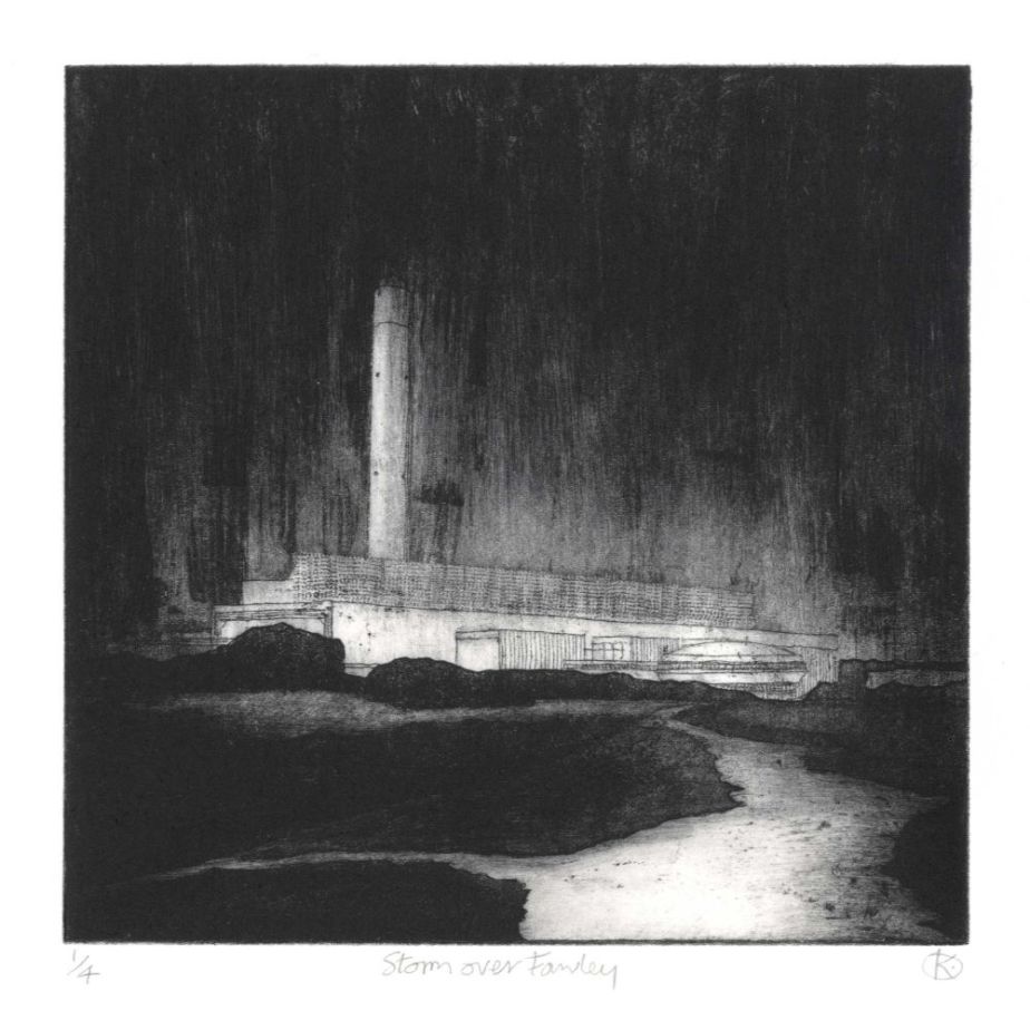 In 2019, I started my Diploma in Printmaking at Red Hot Press in Southampton, choosing the magnificent monument to brutalist architecture Fawley Power Station as my subject to explore through the medium of printmaking. This print uses the medium of etching to project an image of the power station as a shining light, symbolic of a lighthouse, appearing out of the darkness of a storm.