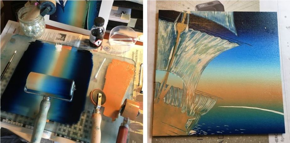 In 2017 I decided to join RHP and their members group Cowprint Artists’ Group, and signed up for their 30 week Foundation Course. This signified the start of an exciting and fulfilling new phase in my life, developing long lasting friendships with like-minded individuals passionate about printmaking and art.